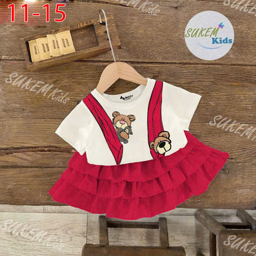 A460348 - Sét váy bánh bèo áo ngắn tay in cham gấu siêu cute chân váy cắt may 3 tầng nhún xòe_Size 1