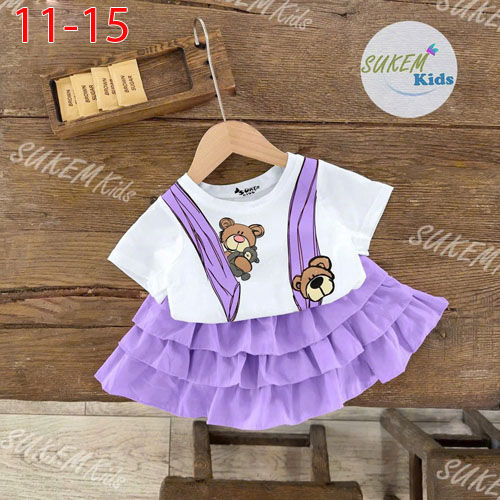 A460351 - Sét váy bánh bèo áo ngắn tay in cham gấu siêu cute chân váy cắt may 3 tầng nhún xòe_Size 1