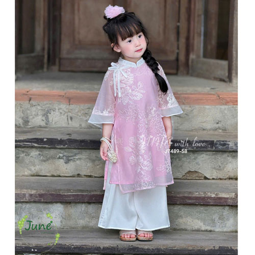 A460445 - Set áo dài NHƯ Ý đẹp tuyệt vời dáng truyền thống điểm thêm nơ tơ thêu cùng lụa ngọc trai_S