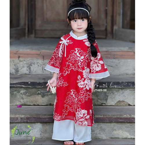 A460447 - Set áo dài NHƯ Ý đẹp tuyệt vời dáng truyền thống điểm thêm nơ tơ thêu cùng lụa ngọc trai_S