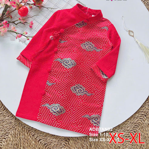 A460584 - Áo dài chất liệu gấm xốp tim phối gấm hoạ vân mây cho bé trai_Size XS-XL