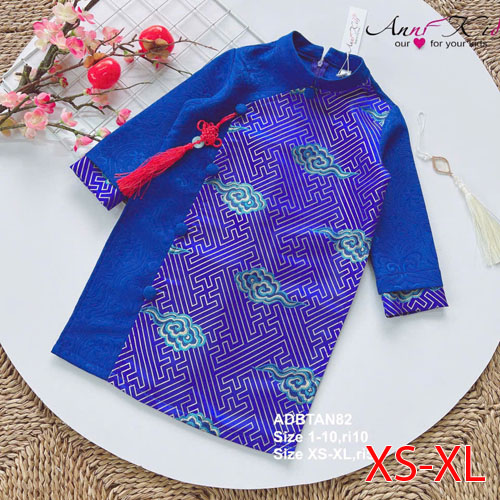 A460586 - Áo dài chất liệu gấm xốp tim phối gấm hoạ vân mây cho bé trai_Size XS-XL