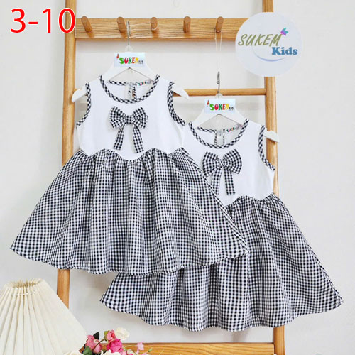 A460686 - Đầm may phối thun đính nơ karo cắt lượn sóng cool xịn tùng xòe nhún bồng bềnh_Size 3-10