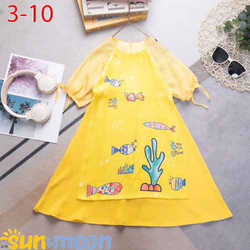 A461205 - Áo dài gấm tay lưới in nơ nhiều cá_Size 3-10