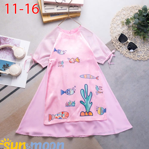A461209 - Áo dài gấm tay lưới in nơ nhiều cá_Size 11-16