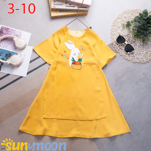 A461211 - Áo dài lụa đắp thỏ trắng carot_Size 3-10