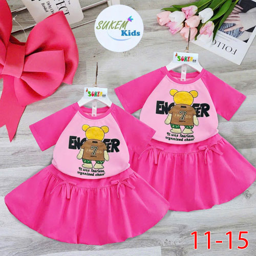 A462710 - (22/10)Set bí áo ngắn tay ráp lăng in gấu thể thao chất thun coton 4c in gấu số 7 chân váy