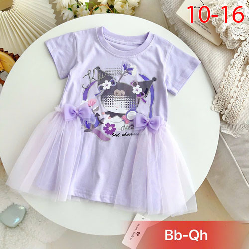 A462721 - (25/10)Đầm may trên chất liệu thun coton 4 chiều hình in sắc nét phối lưới tạo điểm nhấn_S