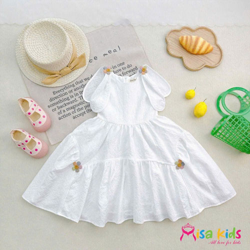 A463242 - Đầm xòe xốp kim cương siêu xinh cho bé gái phần vai gắn tai thỏ tùng gắn hoa phụ kiện_Size