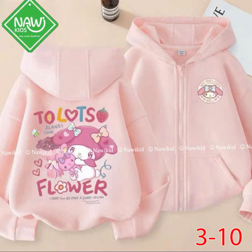 A463466 - Áo Khoác Da Cá bé gái hình in sắc nét có nón dây kéo ( có 2 túi 2 bên) in TOLOTS FLOWER_Si