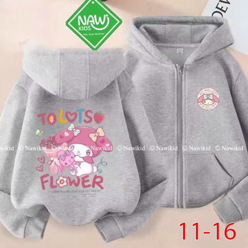 A463472 - Áo Khoác Da Cá bé gái hình in sắc nét có nón dây kéo ( có 2 túi 2 bên) in TOLOTS FLOWER_Si