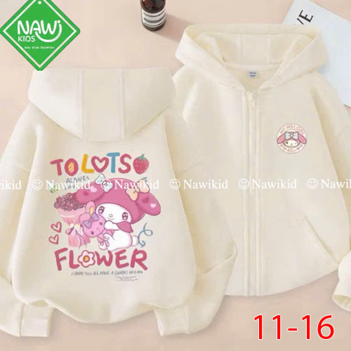 A463474 - Áo Khoác Da Cá bé gái hình in sắc nét có nón dây kéo ( có 2 túi 2 bên) in TOLOTS FLOWER_Si