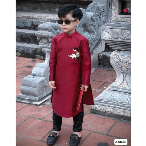 A463611 - Áo dài xuân tước cho bé trai áo dài cách tân hiện đại, đính kết tỉ mỉ chất liệu Tafa_Size