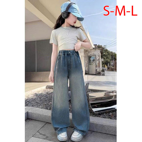 A463619 - Nexxi Win Win quần jean dài ống suông form quần dài lưng thun, ống suông thêu logo nơ tạo
