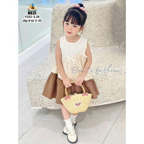 A464246 - Váy chất liệu thô cao cấp phối 3 khoang màu độc đáo điểm nhấn nơ ngực nhẹ nhàng_Size 2-10