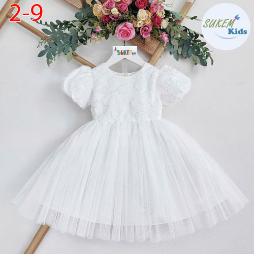A464334 - Đầm ren hoa mai cắt laser tùng may 4 lớp nhún lưới cắt nối cầu vồng sắc màu nhún xòe_Size