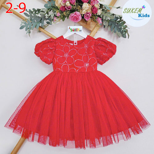 A464335 - Đầm ren hoa mai cắt laser tùng may 4 lớp nhún lưới cắt nối cầu vồng sắc màu nhún xòe_Size