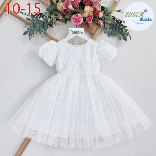 A464343 - Đầm ren hoa mai cắt laser tùng may 4 lớp nhún lưới cắt nối cầu vồng sắc màu nhún xòe_Size