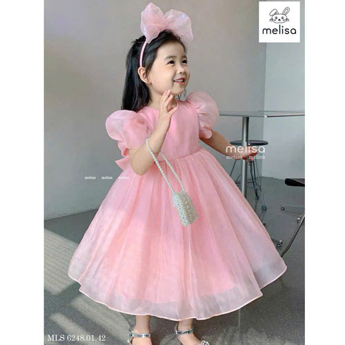 A464459 - (26/10)Đầm Melisa tùng váy siêu xoè, siêu bồng bềnh tay nhún lạ nơ to bản sau lưng_Size 2-