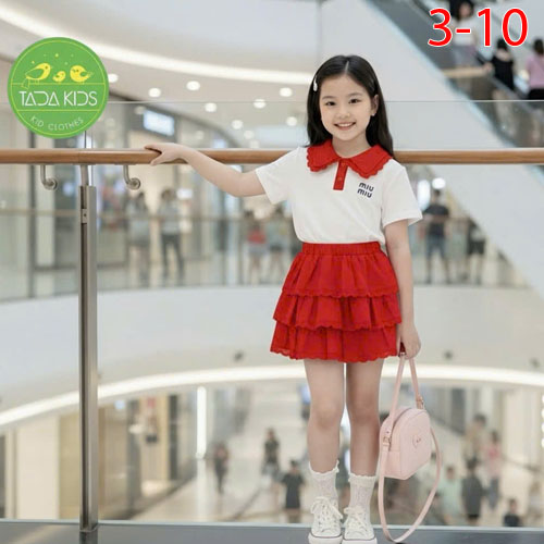 A464463 - Bộ váy gái siêu kute áo thun cotton phối cùng chân váy tầng xịn sò viền ren_Size 3-10