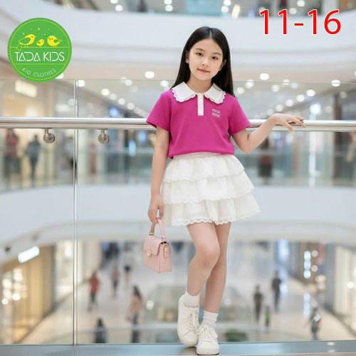 A464467 - Bộ váy gái siêu kute áo thun cotton phối cùng chân váy tầng xịn sò viền ren_Size 11-16