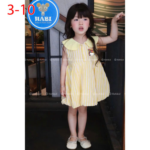 A464623 - Đầm sọc cổ sen bí in Kitty cute sọc cotton linen_Size 3-10