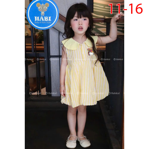 A464624 - Đầm sọc cổ sen bí in Kitty cute sọc cotton linen_Size 11-16