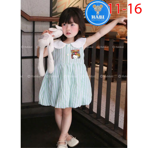 A464627 - Đầm sọc cổ sen bí in Kitty cute sọc cotton linen_Size 11-16