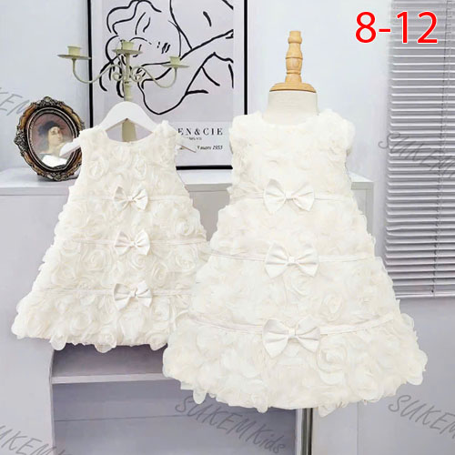 A464963 - Đầm may nguyên ren hoa hồng 5d may 2 lớp pom A baby đầm chạy dây đính 3 Nơ_Size 8-12