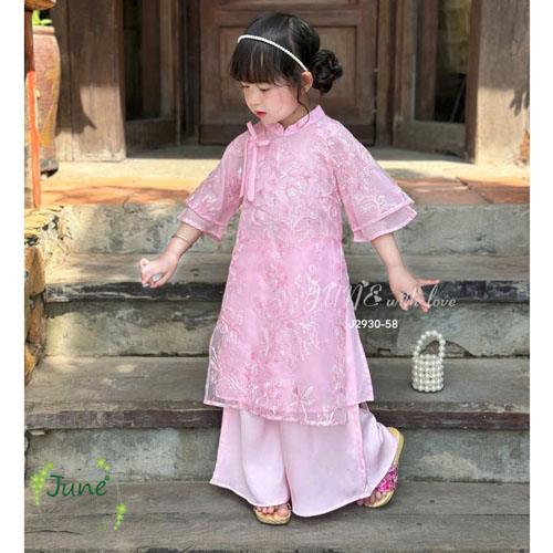 A464966 - Áo dài Tết 2026 thiết kế cách tân cổ thắt nơ xinh xắn tơ thêu nổi cùng lụa ngọc trai_Size