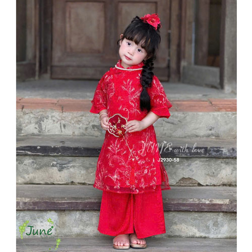 A464967 - Áo dài Tết 2026 thiết kế cách tân cổ thắt nơ xinh xắn tơ thêu nổi cùng lụa ngọc trai_Size