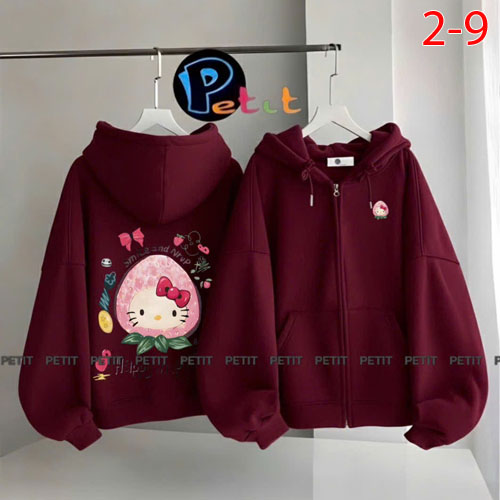 A465067 - Áo khoác cực xinh yêu cho bé may phối nón đắp túi trước thun da cá in Kitty cô bé_Size 2-9