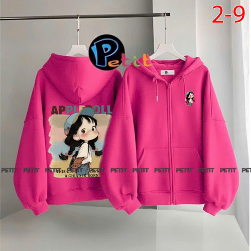 A465068 - Áo khoác cực xinh yêu cho bé may phối nón đắp túi trước thun da cá in Kitty cô bé_Size 2-9