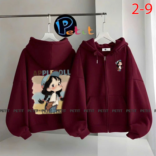 A465069 - Áo khoác cực xinh yêu cho bé may phối nón đắp túi trước thun da cá in Kitty cô bé_Size 2-9