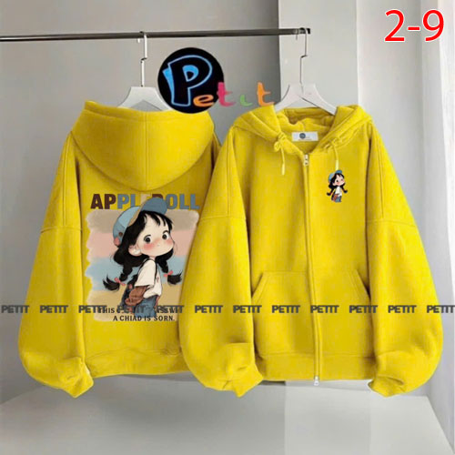A465074 - Áo khoác cực xinh yêu cho bé may phối nón đắp túi trước thun da cá in Kitty cô bé_Size 2-9