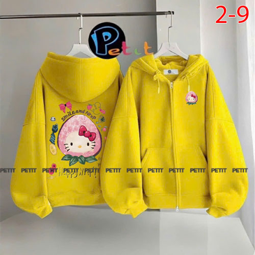 A465076 - Áo khoác cực xinh yêu cho bé may phối nón đắp túi trước thun da cá in Kitty cô bé_Size 2-9