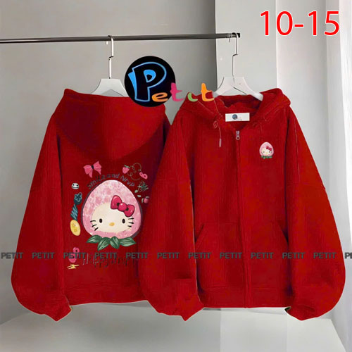 A465081 - Áo khoác cực xinh yêu cho bé may phối nón đắp túi trước thun da cá in Kitty cô bé_Size 10-