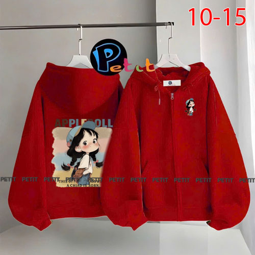 A465083 - Áo khoác cực xinh yêu cho bé may phối nón đắp túi trước thun da cá in Kitty cô bé_Size 10-