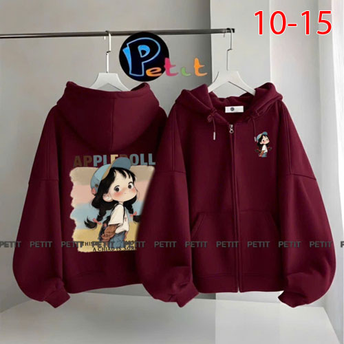 A465084 - Áo khoác cực xinh yêu cho bé may phối nón đắp túi trước thun da cá in Kitty cô bé_Size 10-