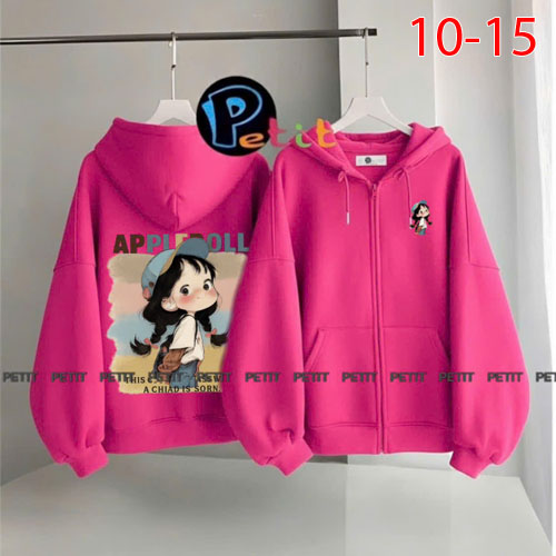 A465085 - Áo khoác cực xinh yêu cho bé may phối nón đắp túi trước thun da cá in Kitty cô bé_Size 10-
