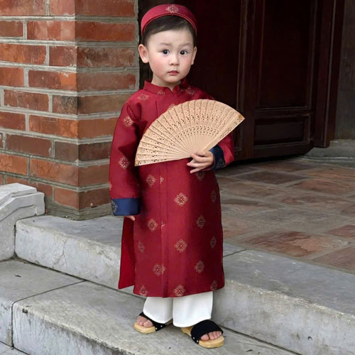 A465092 - (3/11)Áo Dài Bé Trai Lịch lãm gấm cao cấp với họa tiết cổ điển tinh xảo phối viền tay áo k