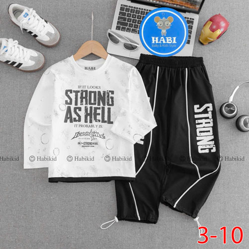 A465207 - Set bộ tay dài quần dài bé trai Strong Ashell thun cotton 4c in cham loang toàn thân_Size