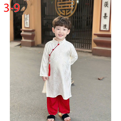A465215 - (6/11)Bộ áo dài gấm dành cho bé trai thiết kế truyền thống kết hợp hiện đại_Size 3-9