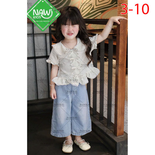 A465306 - Áo bé gái chấm bi trendy cổ sen viền ren tay bèo kết nơ làm thủ công theo vải áo lai áo ch