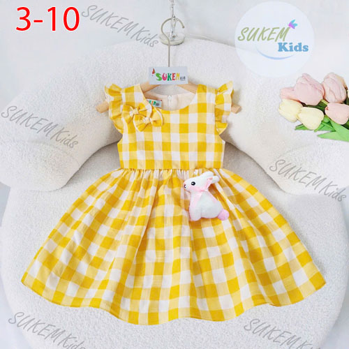 A465464 - Đầm được Thiết kế đính 2 nơ kèm phụ kiện thỏ vải kate thô coton_Size 3-10