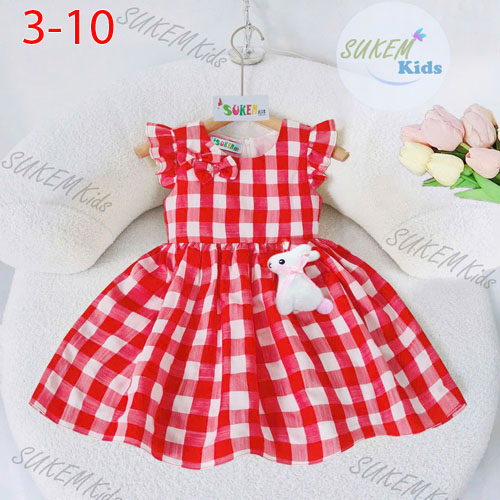 A465465 - Đầm được Thiết kế đính 2 nơ kèm phụ kiện thỏ vải kate thô coton_Size 3-10
