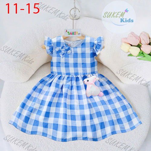 A465468 - Đầm được Thiết kế đính 2 nơ kèm phụ kiện thỏ vải kate thô coton_Size 11-15