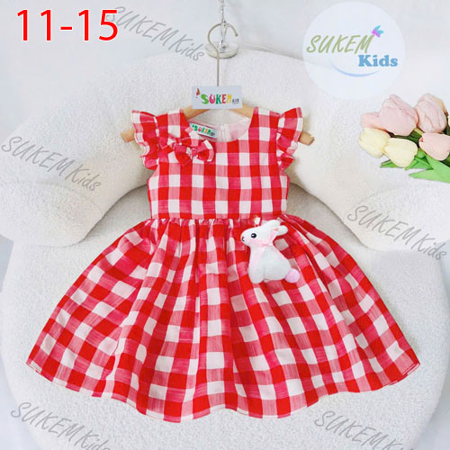 A465470 - Đầm được Thiết kế đính 2 nơ kèm phụ kiện thỏ vải kate thô coton_Size 11-15