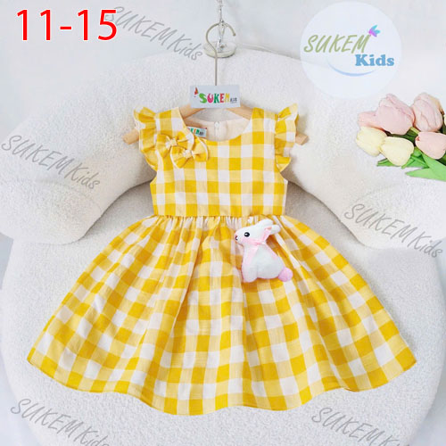 A465471 - Đầm được Thiết kế đính 2 nơ kèm phụ kiện thỏ vải kate thô coton_Size 11-15