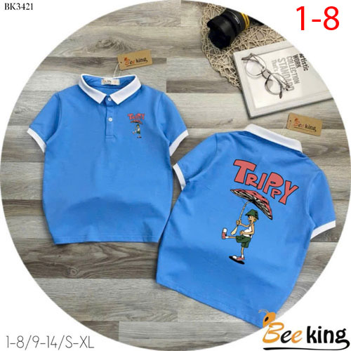 A465586 - Áo bé trai cổ trụ Tripey thun cotton 4c_Size 1-8